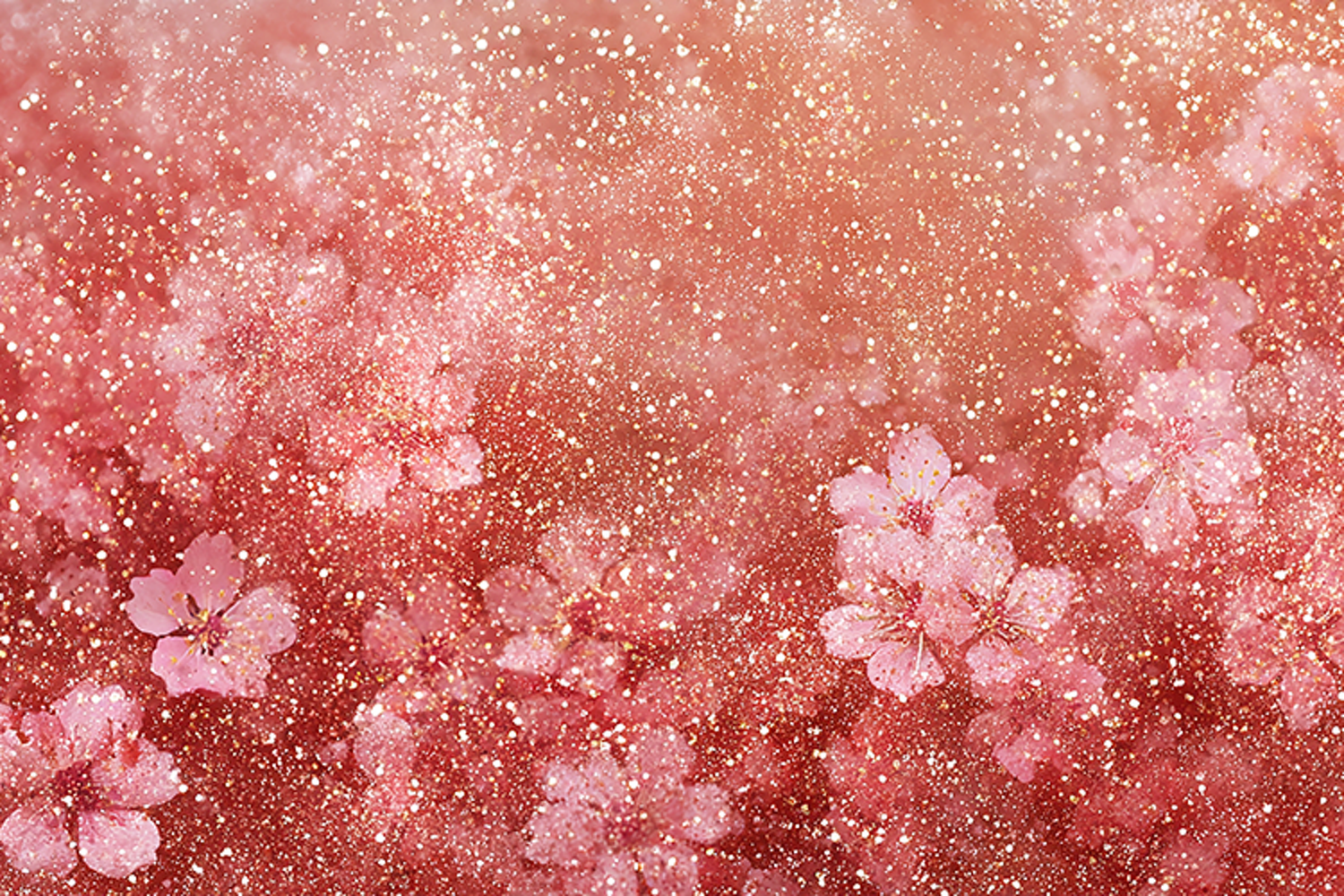 Pink glittery background adorned with delicate cherry blossoms and numerous sparkling particles. The vibrant and colorful design creates a festive atmosphere, perfect for celebrations, parties, or decorative purposes. The abstract texture and pattern add a unique touch to any project or design.
