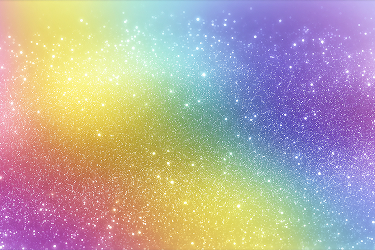 Rainbow-colored background with a sparkling glitter effect and scattered stars. The colors blend seamlessly together, creating a mesmerizing and eye-catching visual effect. The texture is reminiscent of a cosmic or celestial scene, perfect for use in digital art, design, or as a creative background for various projects.