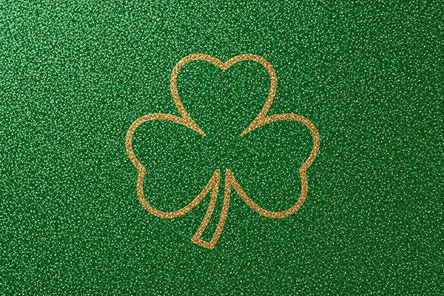 A golden shamrock drawn on a green textured background