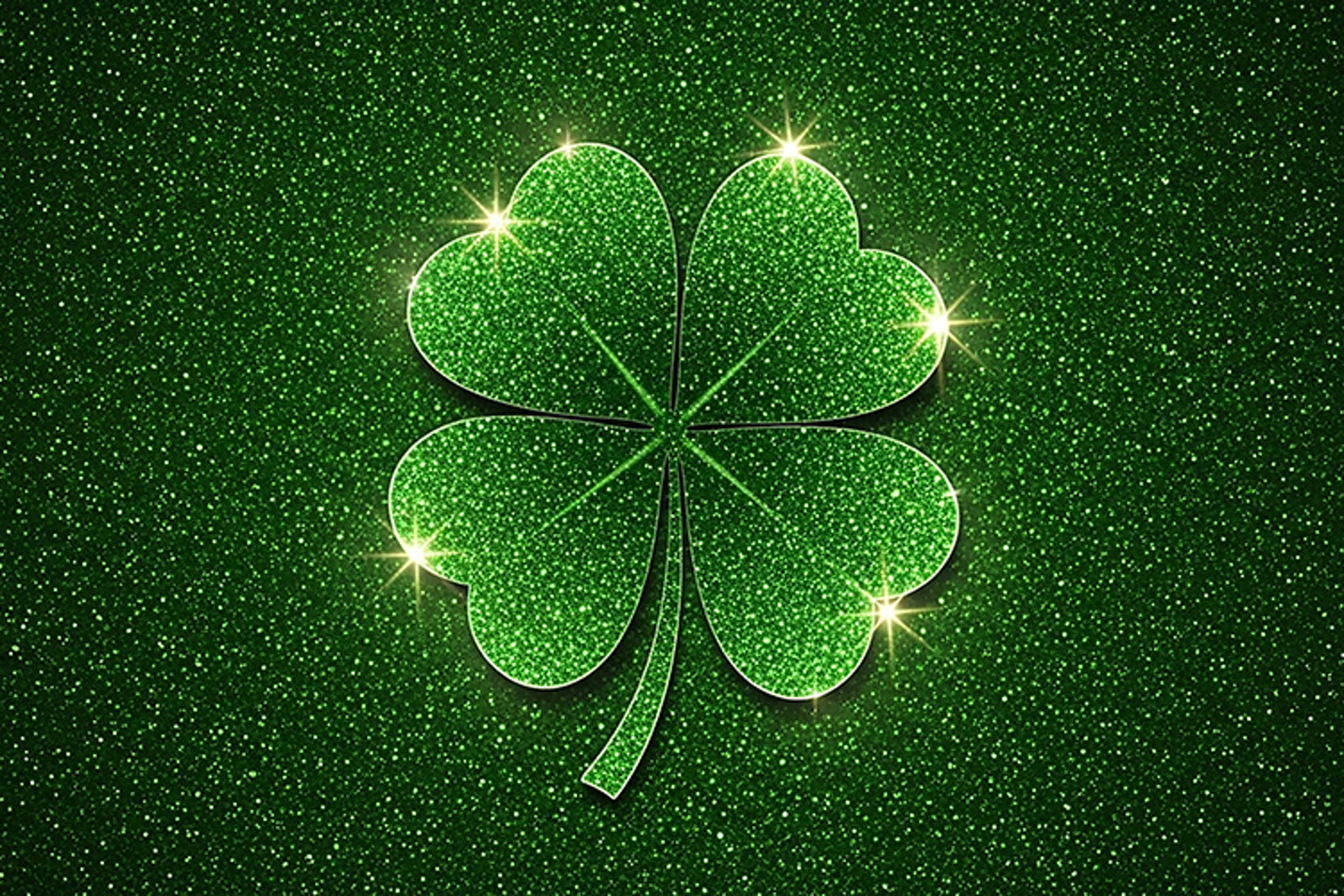 Symbol Green Glitter Sparkle Irish Lucky Charm St Patrick's Day Luck Four-leaf Clover