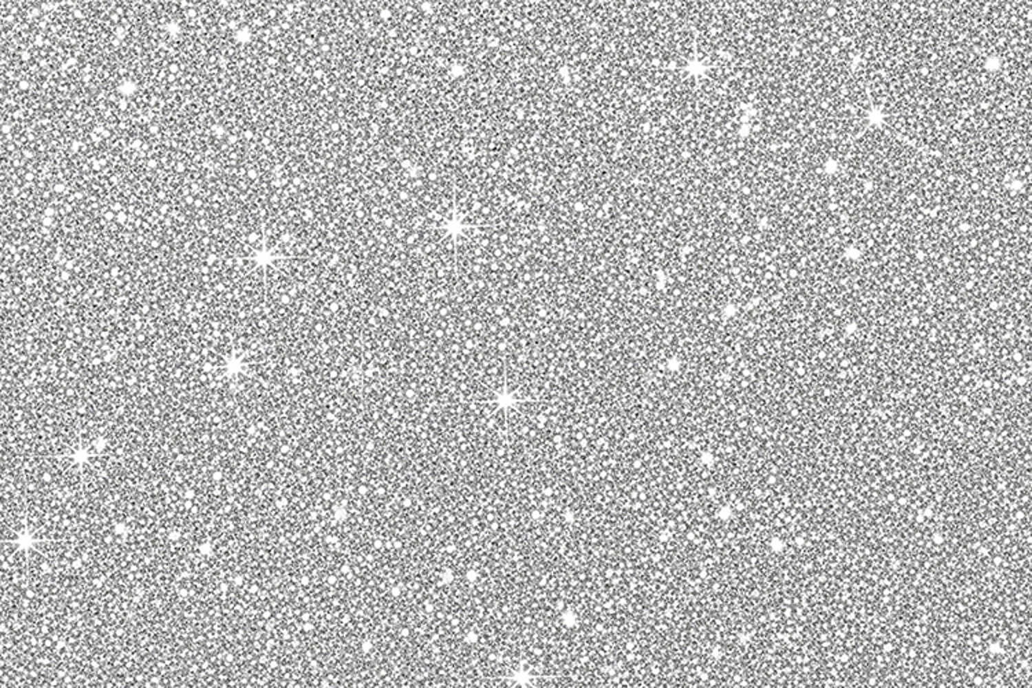 A sparkling silver glitter background with white stars