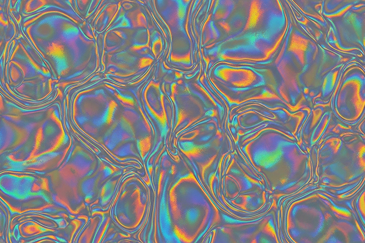 Holographic background with swirling patterns & rainbow hues
