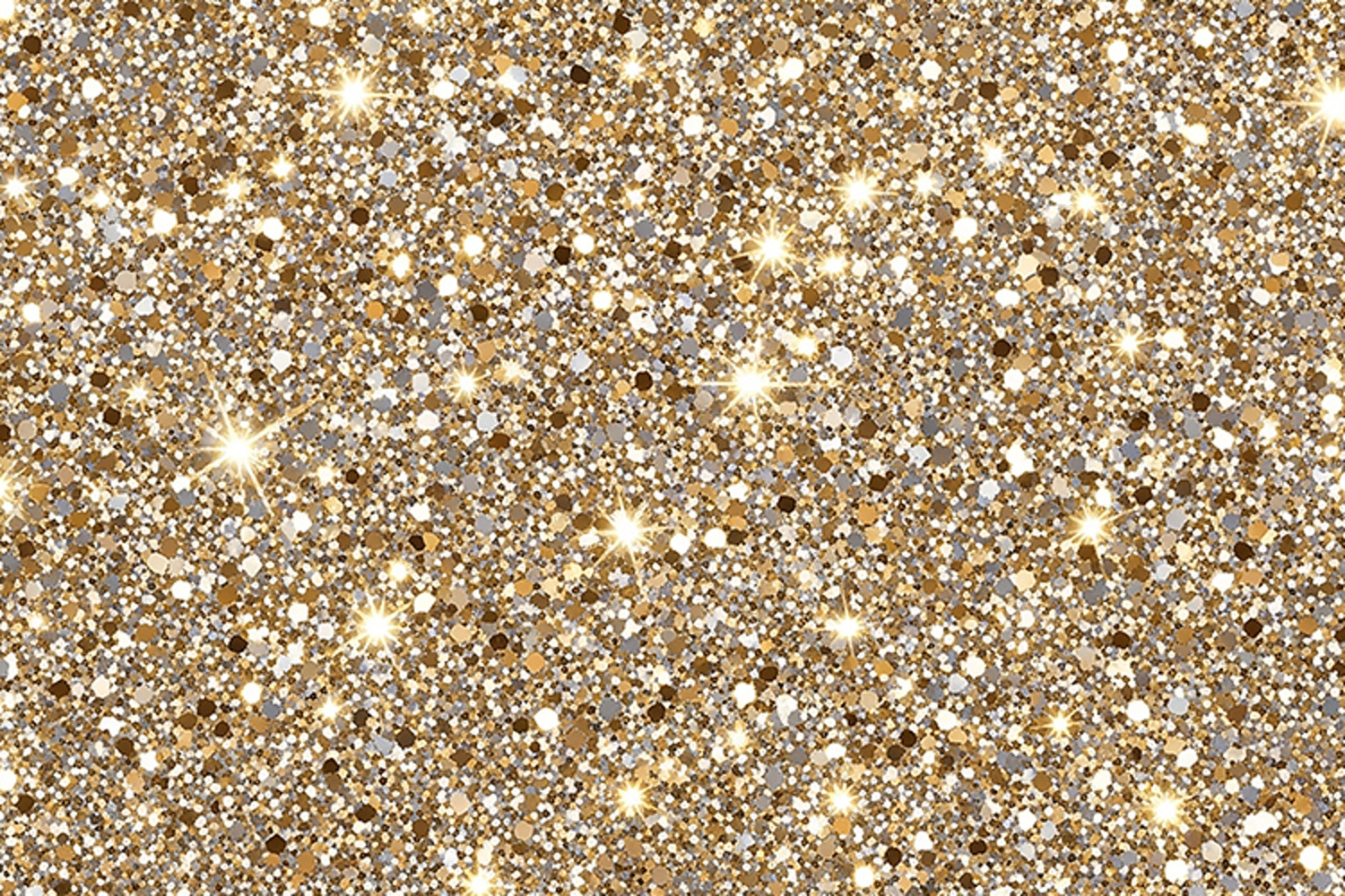 Gold glitter background, densely packed with bright shiny specks and stars. The glittering texture creates a sense of luxury and glamour, perfect for use in designs related to celebrations, parties, and special occasions. The abstract pattern is ideal for adding a touch of festive sparkle to various creative projects.