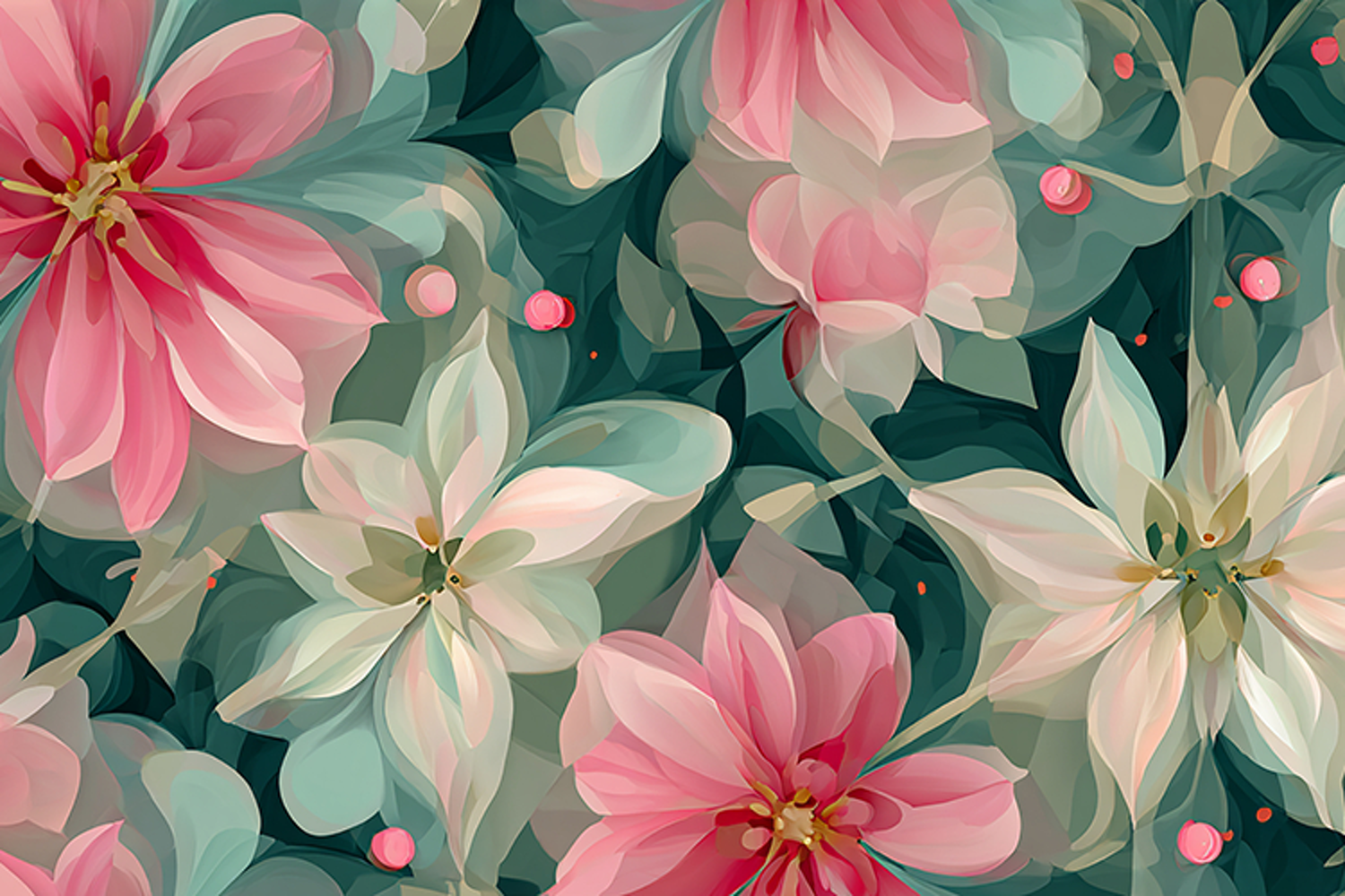 Floral pattern with pink & white flowers on green background example image 1