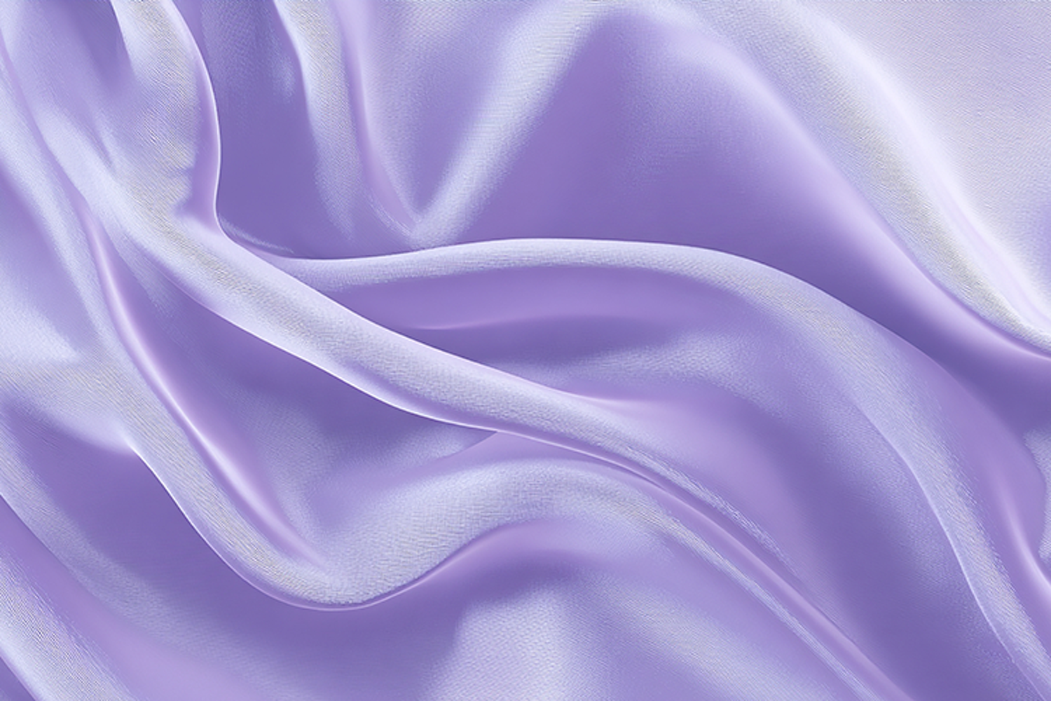 Smooth lavender silk fabric with flowing folds and gentle curves. The fabric appears to be made of high-quality silk, with a soft and luxurious texture that catches the light. The gentle folds and curves of the fabric create a sense of movement and flow, while the lavender color adds a touch of elegance and sophistication.