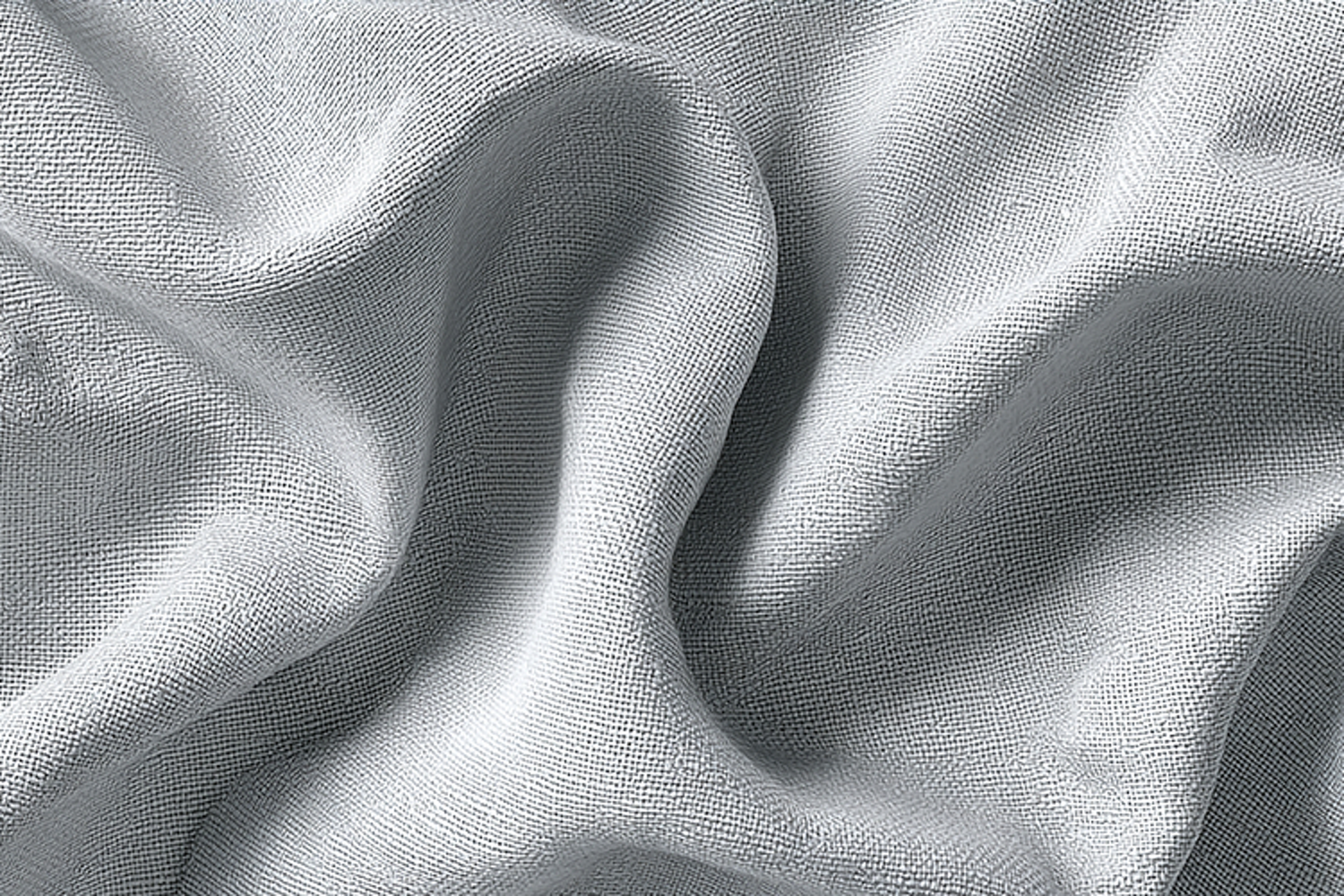 Wrinkled white fabric, showcasing its textured weave pattern. The fabric appears to be made of a natural fiber such as linen or cotton, with a smooth, soft texture and delicate folds and creases. The intricate design and organic pattern of the fabric make it a visually appealing element for use as a background or abstract composition.