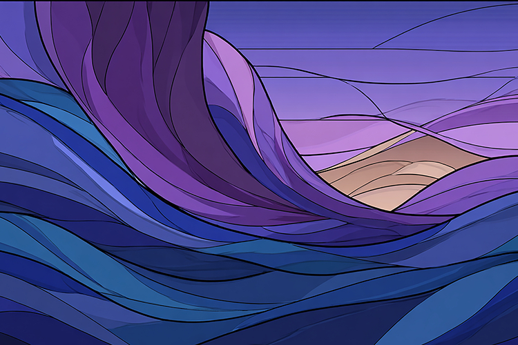 Illustration of flowing purple and blue waves