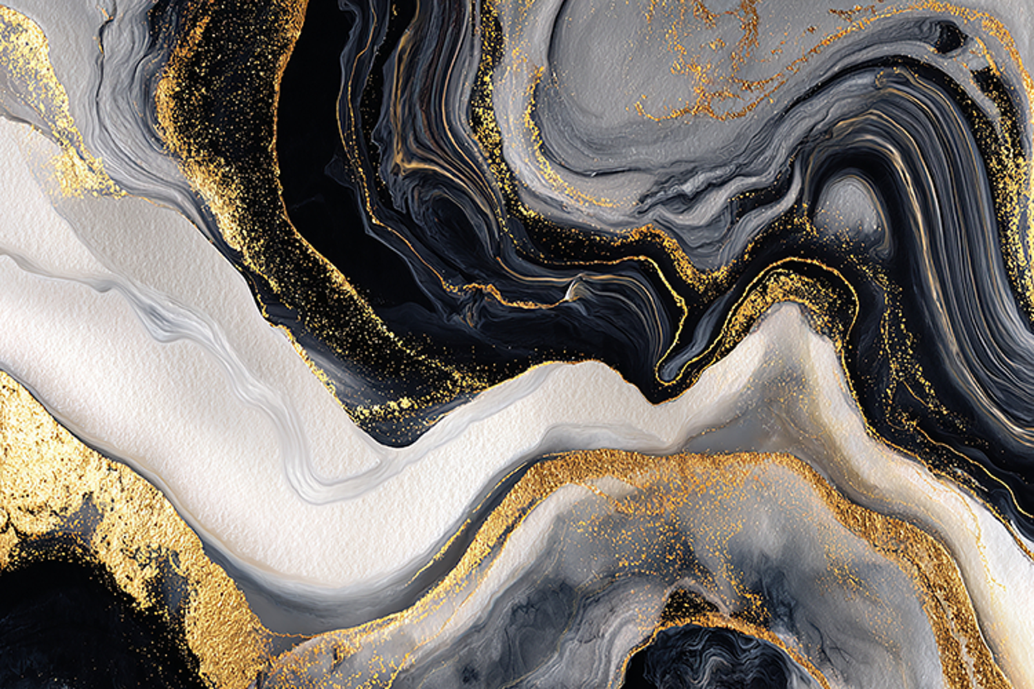 Black White Gold Swirl Marble Bundle