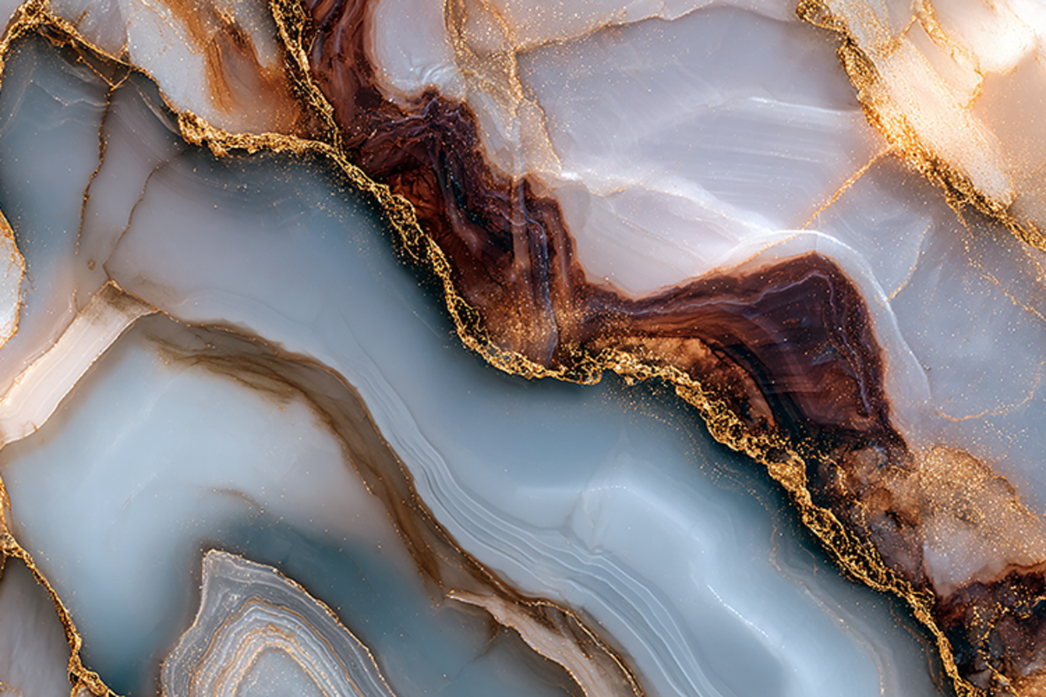 Sophisticated grey onyx stone texture featuring heavy dark brown mineral layers and fine golden dust.