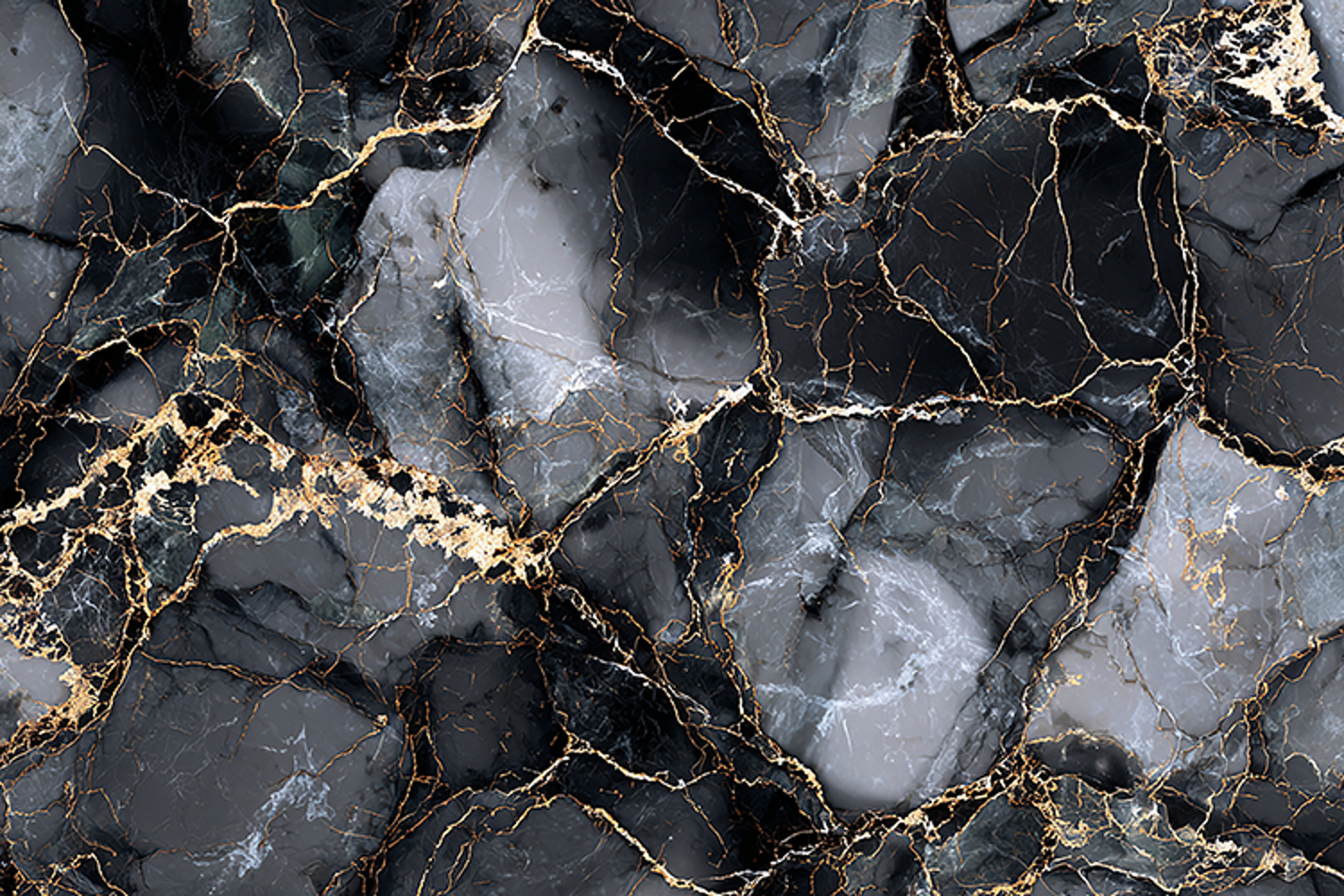 High Contrast Black Marble Elegant Pattern Gold Veins Cracked Texture White Stone Kintsugi Style Abstract Stone Geometric Mineral Luxury Flooring