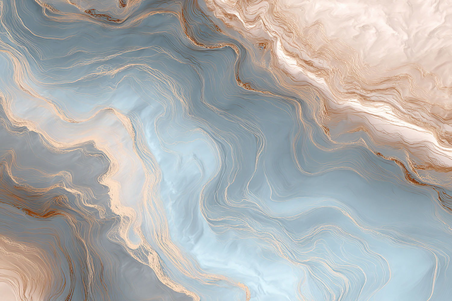 Ethereal Soft Blue Fluid Marble with Delicate Copper Veining
