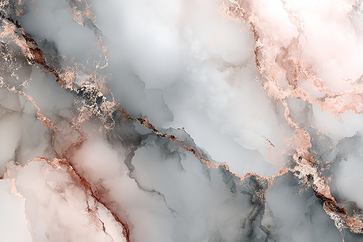 A sophisticated gray marble texture blended with soft smoky tones and accented by elegant rose gold veins. The fluid mineral patterns and subtle metallic highlights create a luxurious and modern aesthetic, perfect for wallpapers, luxury branding, packaging, and contemporary interior design backgrounds.