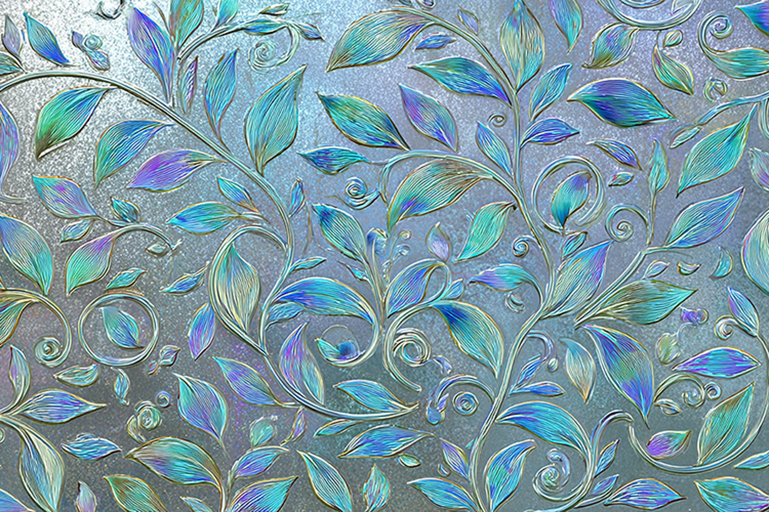 Elegant metallic floral pattern featuring flowing leaves and ornamental vines with iridescent colors. Perfect for wallpapers, luxury backgrounds, decorative surfaces, and stylish interior design projects.