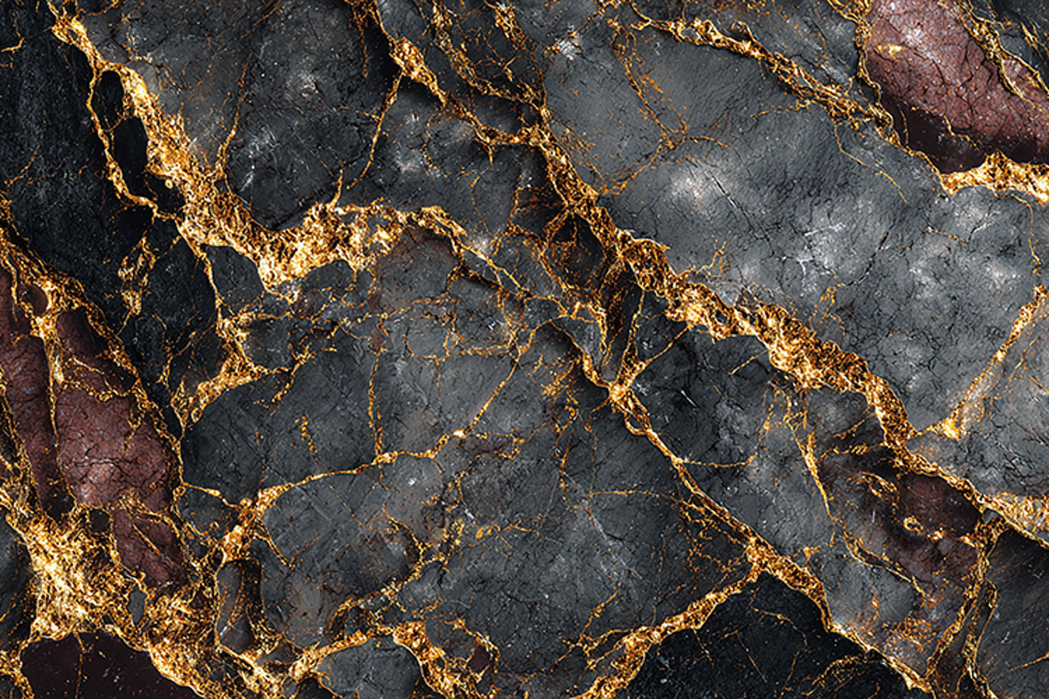 Elegant black marble texture featuring dramatic golden veins and rich natural stone patterns. Ideal for luxury interiors, wallpapers, architectural surfaces, and high-end decorative backgrounds.