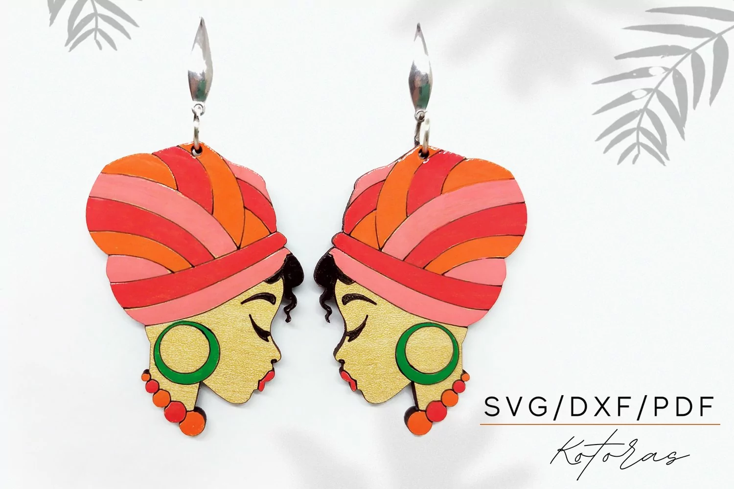 African girl earring for laser cut and engrave Wood Earring Svg, Laser Cut Earring Svg for Glowforge, Earring Shapes Svg, Pdf, Dxf