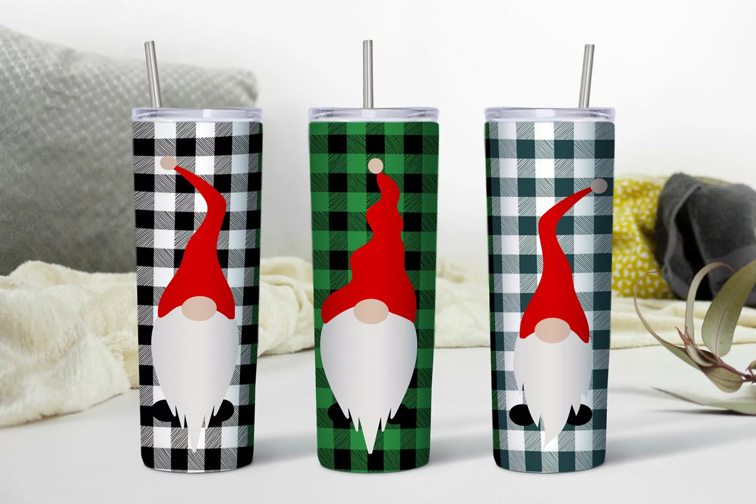 Christmas Gnome Sublimation Tumbler Leopard Plaid Design