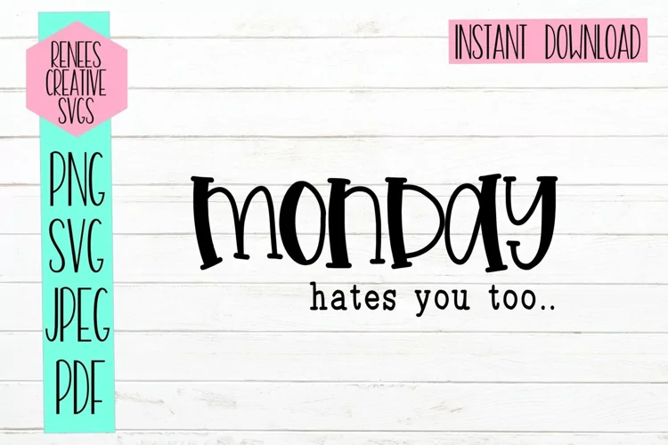 Monday hates you too| Funny SVG | SVG Cutting File example image 1