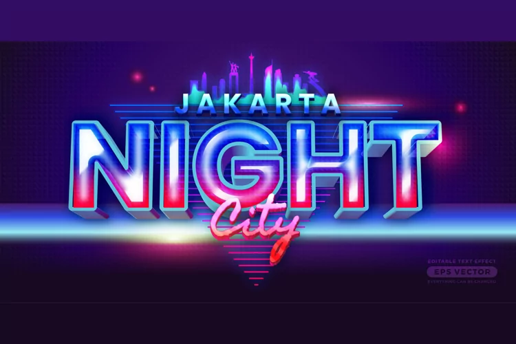 Jakarta Night City Retro Text Effect with theme retro realistic neon light concept for trendy flyer, poster and banner template promotion