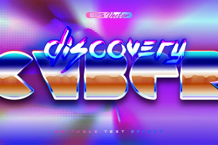 Retro shiny Y2K editable text effect discovery cyber with futuristic background ideal for poster flyer social media post with give them the rad 1980s touch