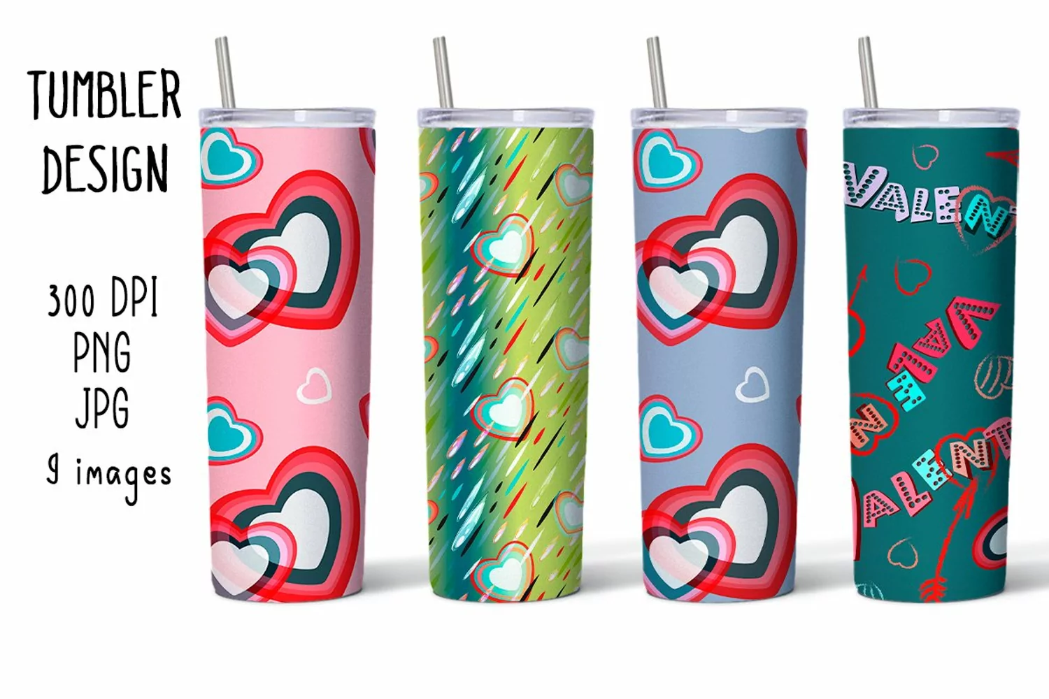20-oz Tumbler Sublimation 9 designs/ Valentines and Hearts