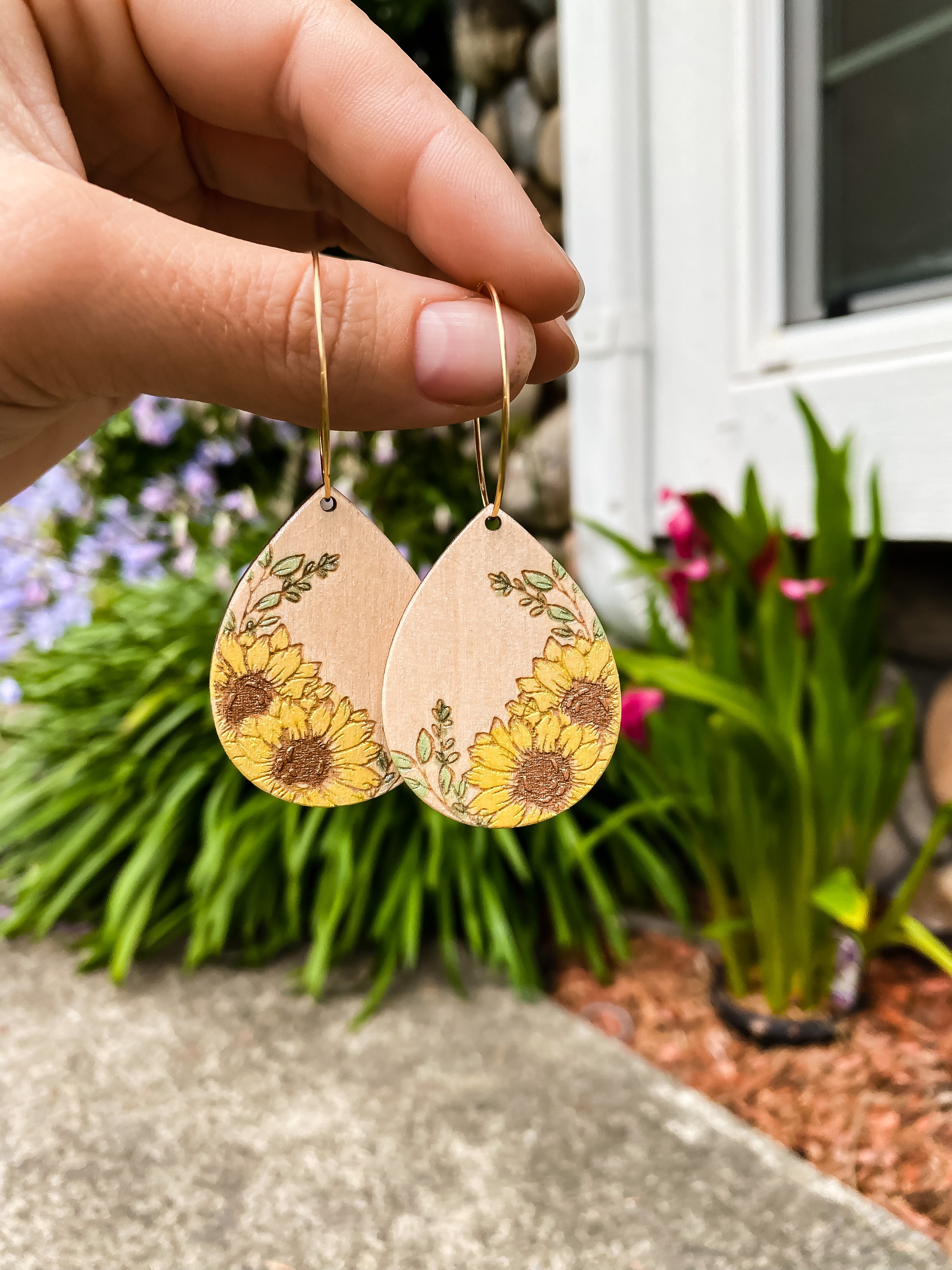 Floral Drop Earrings Glowforge SVG | Sunflower Laser File