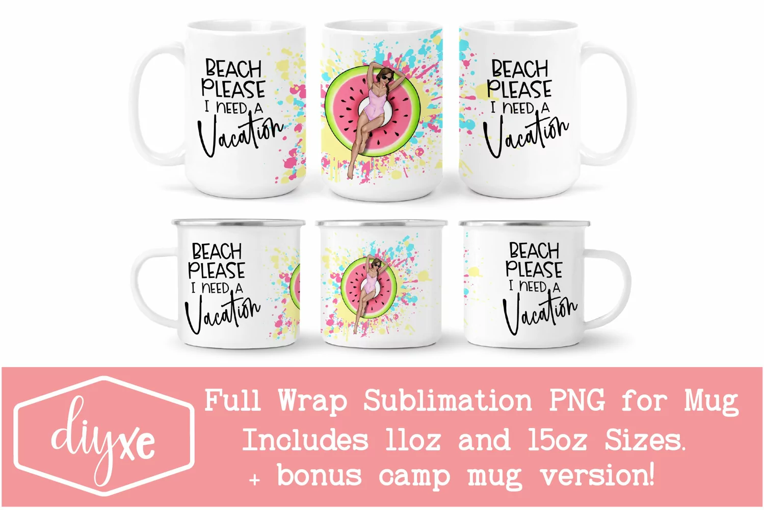 Beach Please, I Need A Vacation |Funny Sublimation Mug