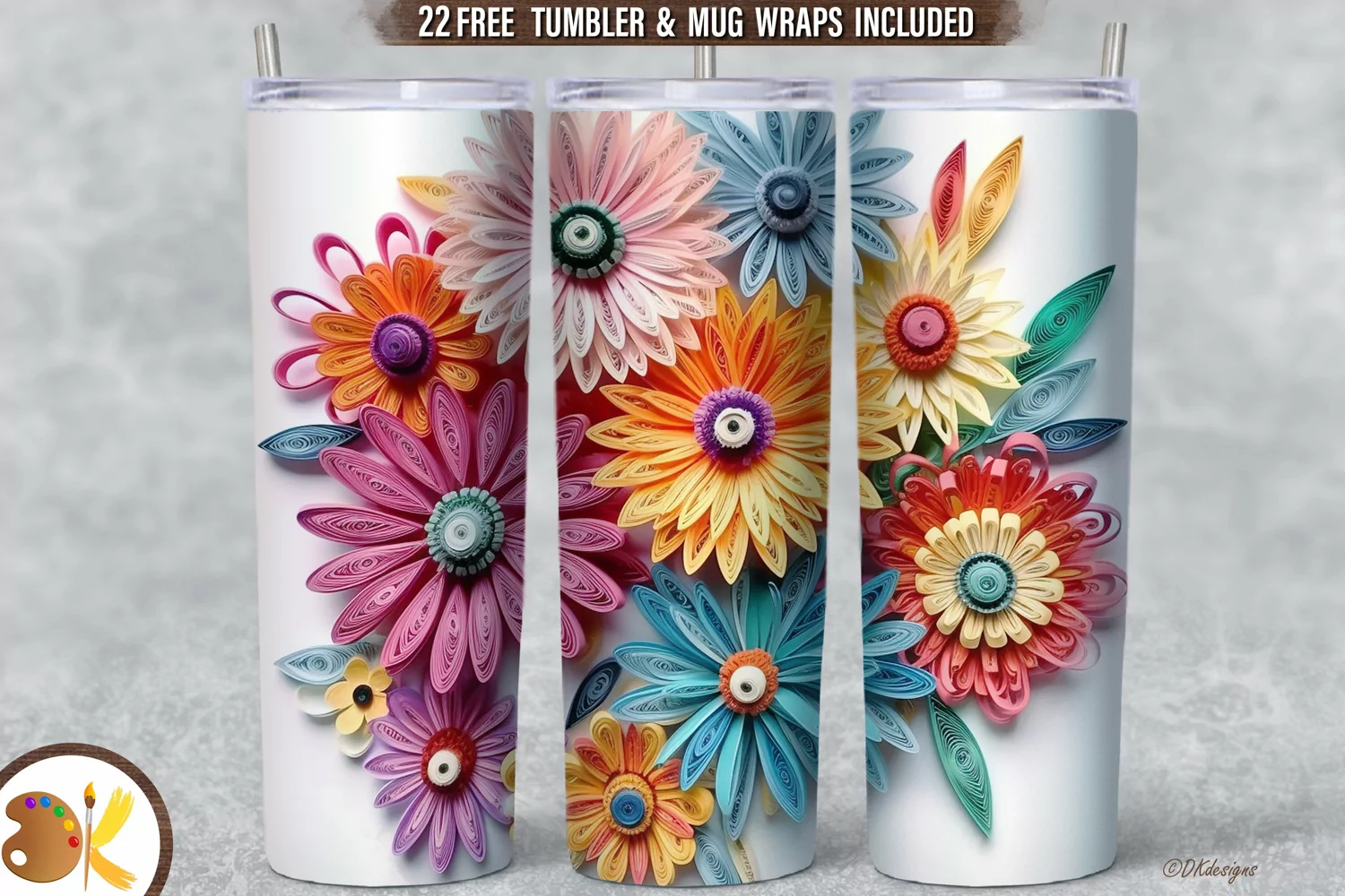 Hi and Welcome to DKdesigns! Love how this Quilling Flowers tumbler wrap turned out! The idea for this tumbler is inspired by all of our unique quilling artwork in our atelier for handmade.