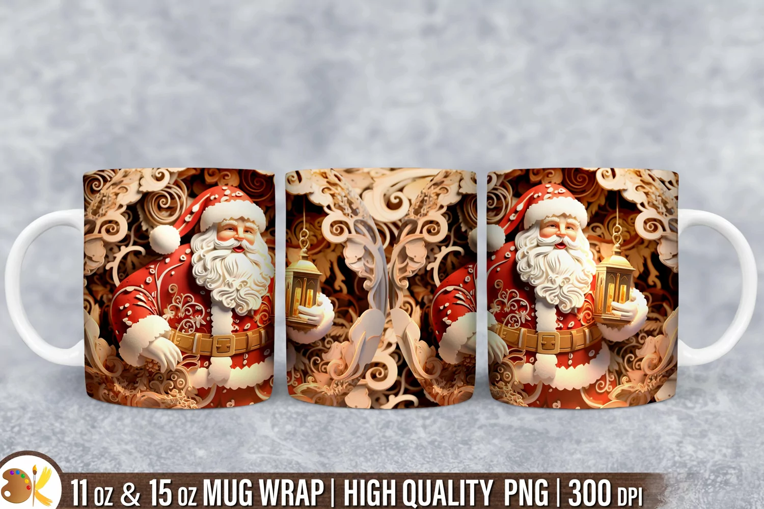 3D Santa Mug Sublimation, 11 oz Christmas Mug Wrap example image 1