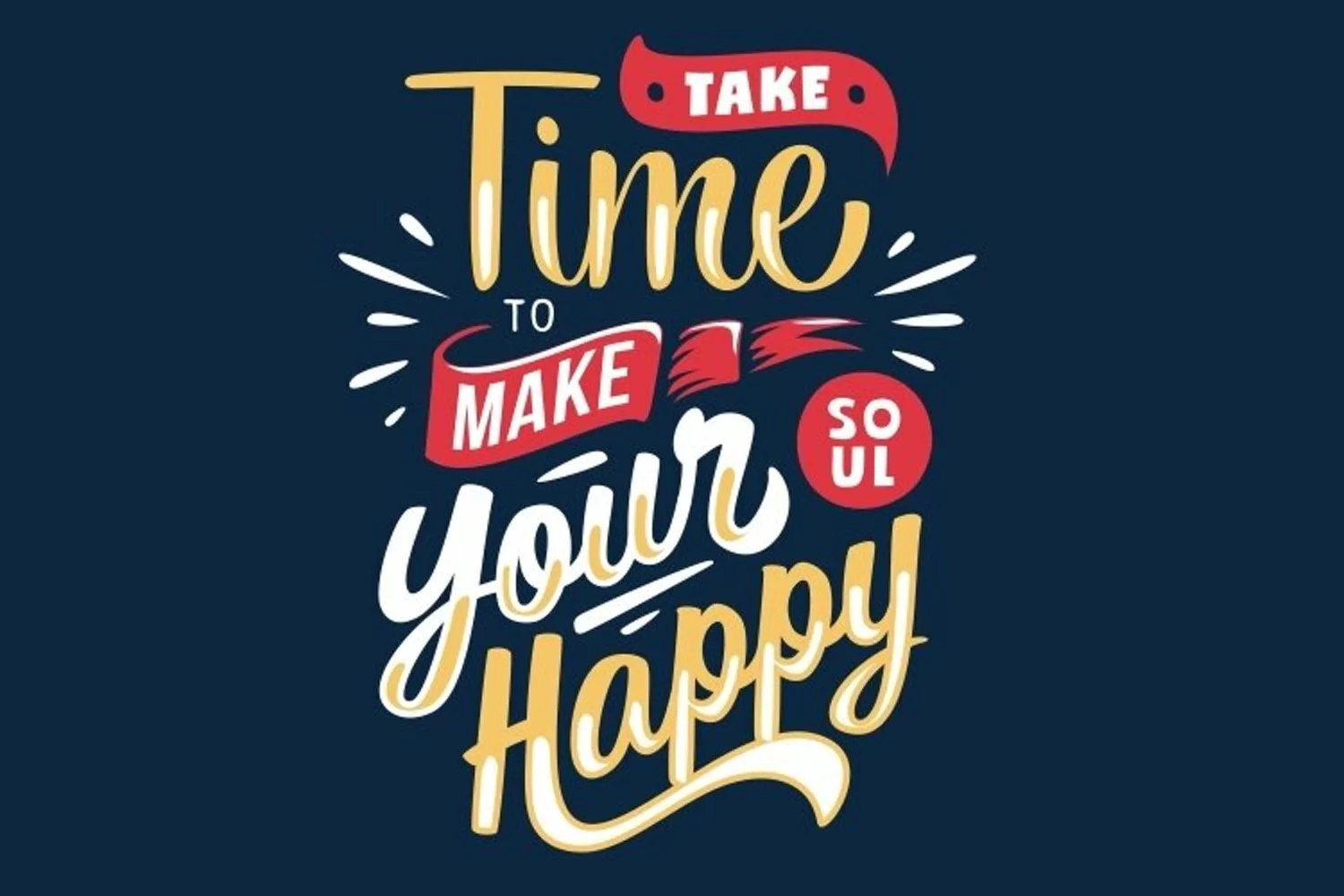 "Take Time to Make Your Soul Happy" Based on vector design. This artwork is in AI, EPS, PDF, PSD formats and PNG files, ready for print. Separate color based on layer, it can be used for digital printing and screen printing, and can also be used for stickers, logos, poster, wallpapers. Thanks and enjoy !!!