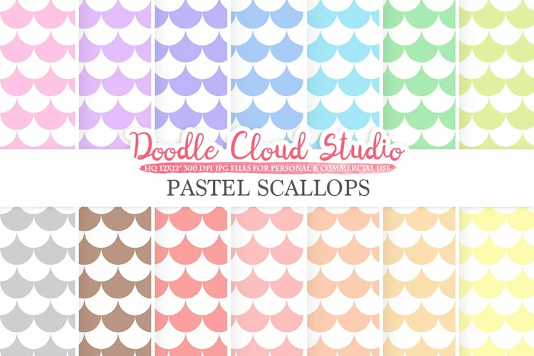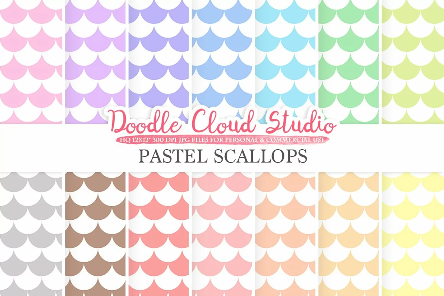 Pastel Scallops digital paper, Scallops patterns, Digital Scallops, pastel colors background, Instant Download for Personal & Commercial Use.