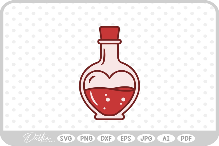 Love Potion Heart Shaped Bottle Valentine's Day SVG PNG DXF example image 1