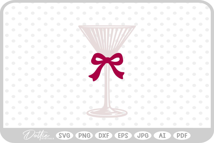 Similar Design Products to Pink Cocktail Martini Glass With Ribbon Bow SVG PNG DXF