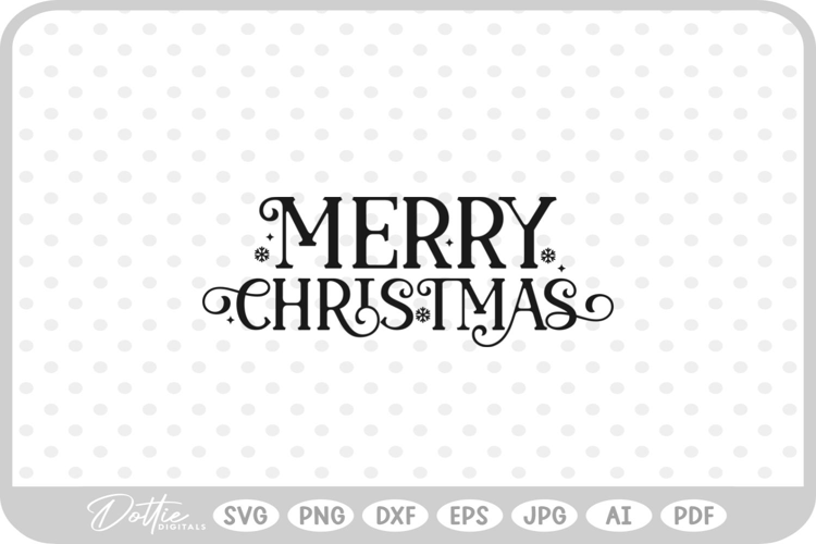 Merry Christmas Script Text Snowflake SVG PNG DXF