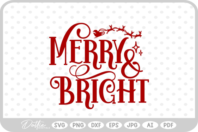 Merry And Bright Christmas Santa Quote Text SVG PNG DXF example image 1
