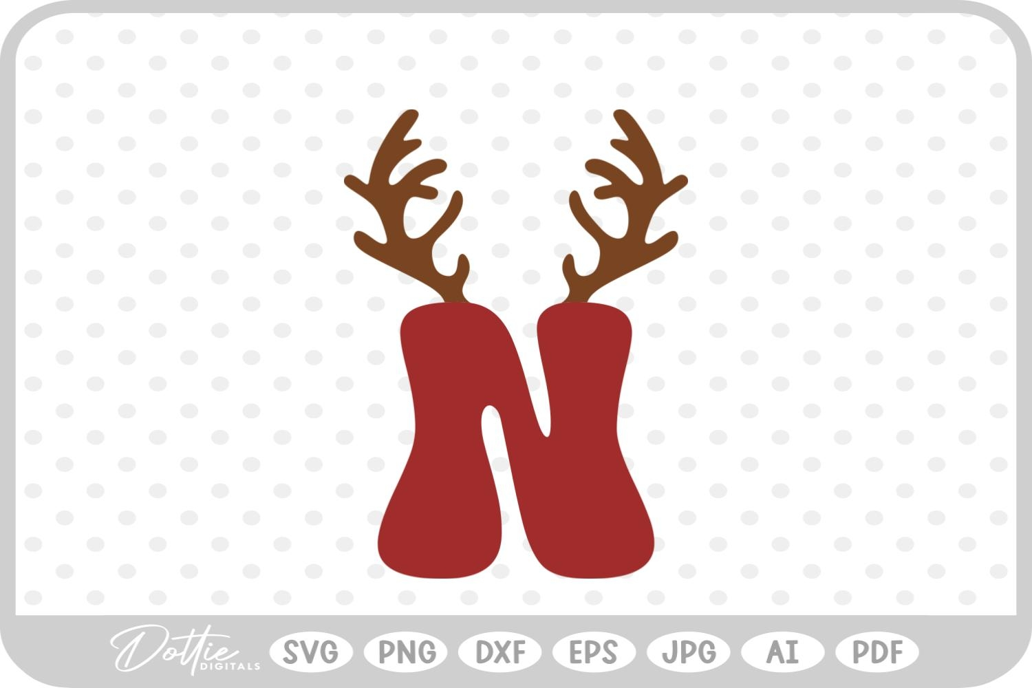 N Festive Christmas Alphabet Letter Antler Santa SVG PNG DXF example image 1