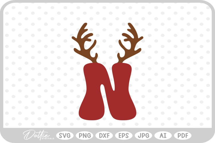 N Festive Christmas Alphabet Letter Antler Santa SVG PNG DXF