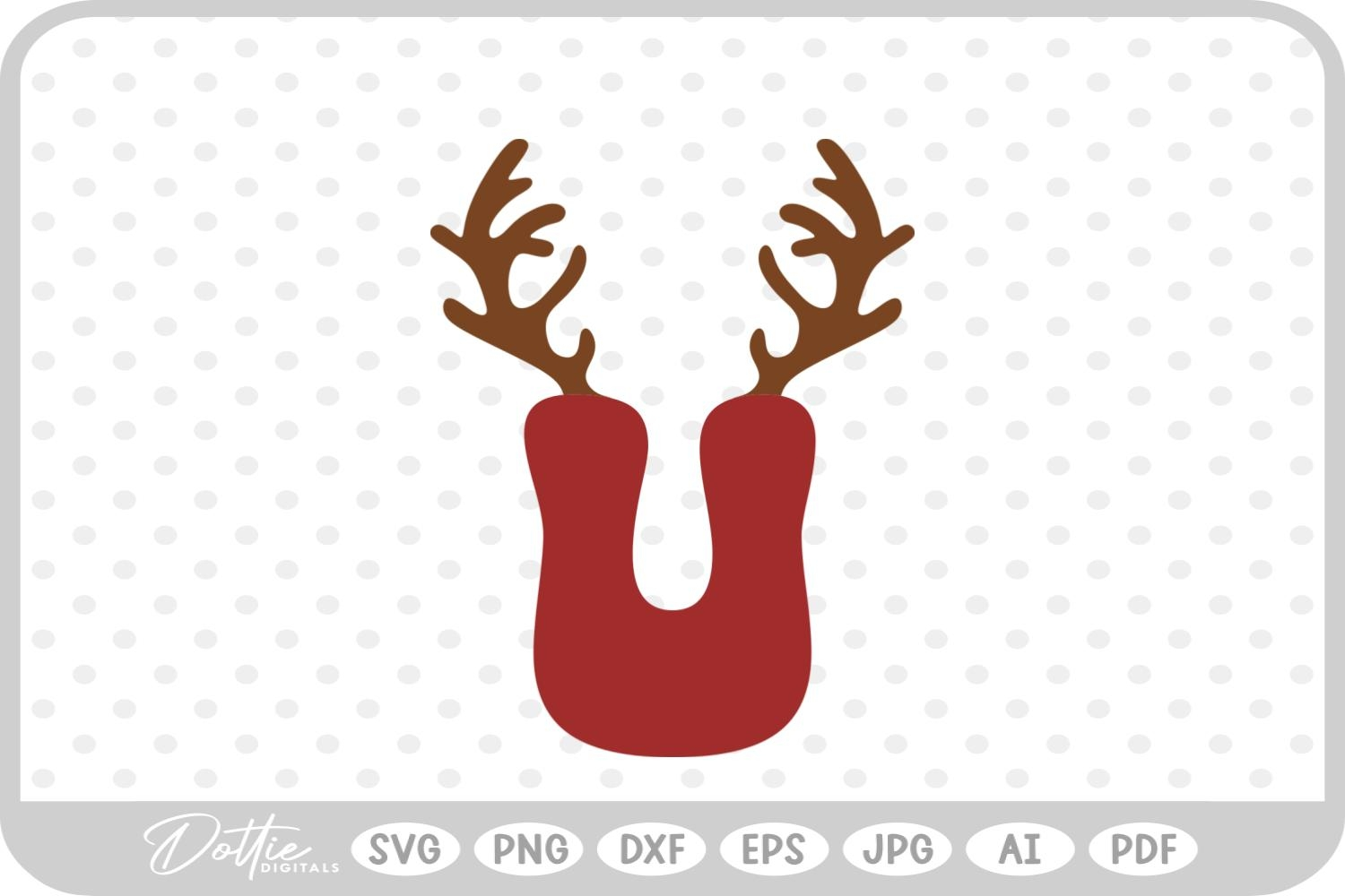 U Festive Christmas Alphabet Letter Antler Santa SVG PNG DX example image 1