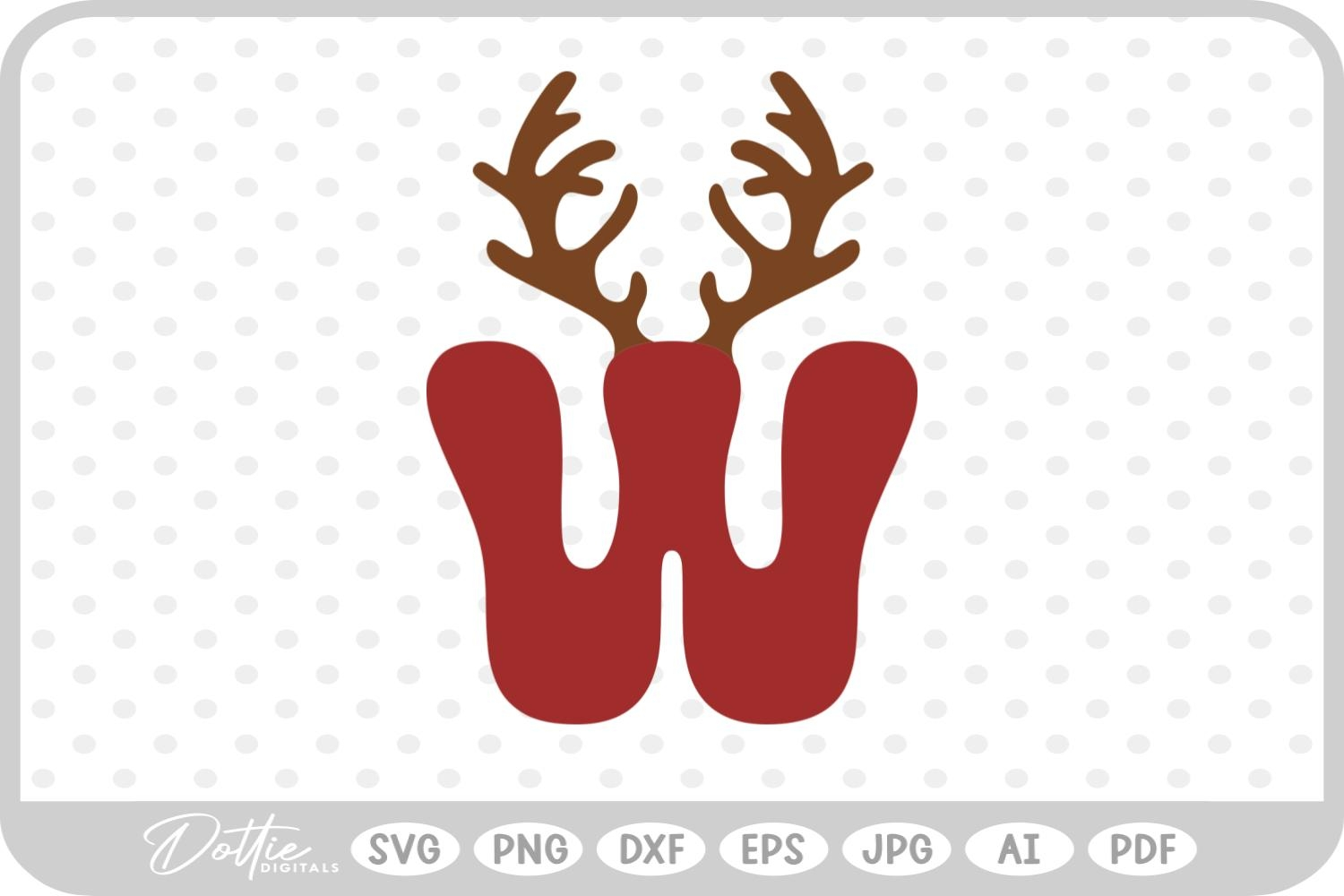 W Festive Christmas Alphabet Letter Antler Santa SVG PNG DX example image 1