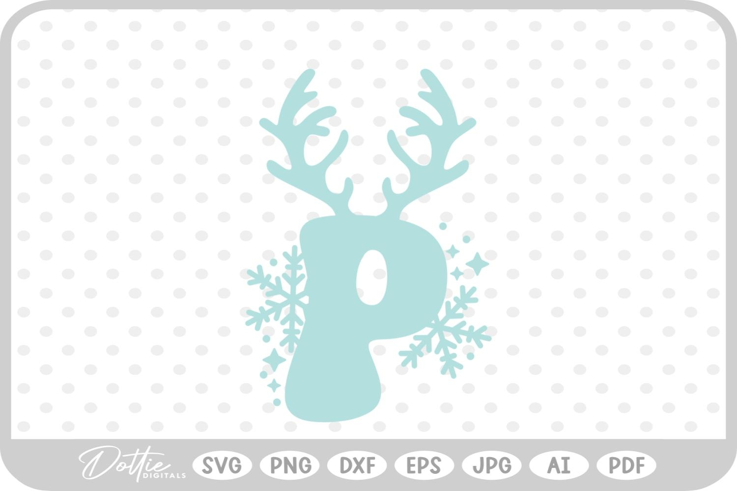 P Festive Christmas Alphabet Letter Antler Santa SVG PNG DXF example image 1