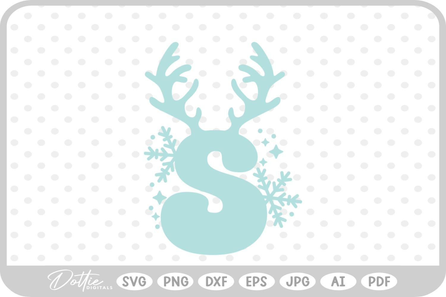 S Festive Christmas Alphabet Letter Antler Santa SVG PNG DXF
