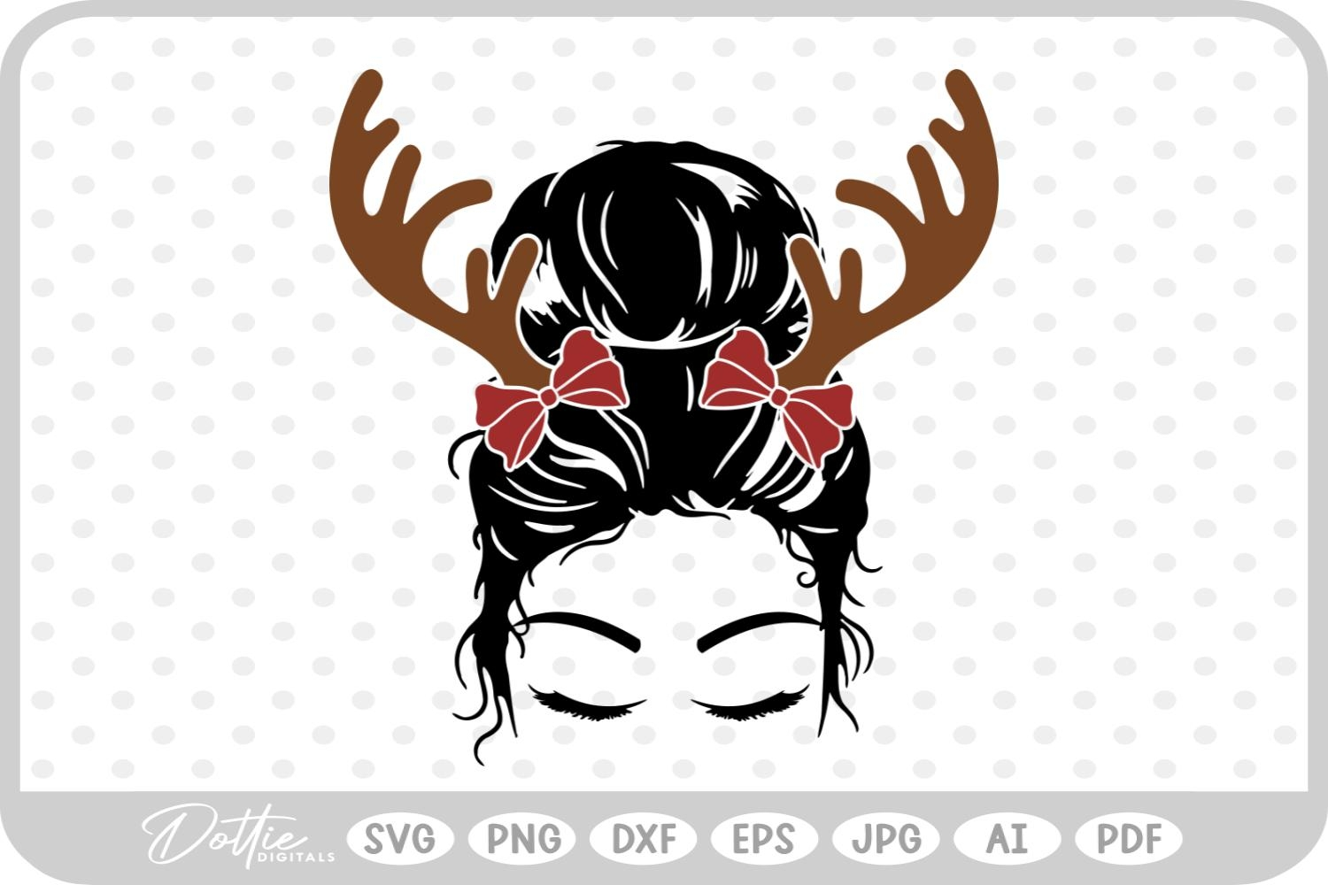 Mom Christmas Messy Bun Antler Bows Girl Festive SVG PNG DXF