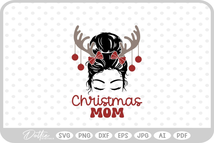 Reindeer Baubles Messy Bun Christmas Girl Mom Antler Bows example image 1