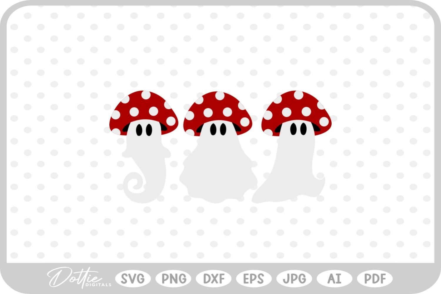 Ghost Mushroom Toadstool Fall Autumn Halloween SVG PNG DXF example image 1