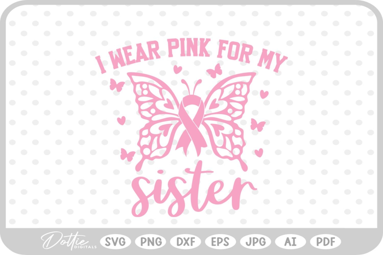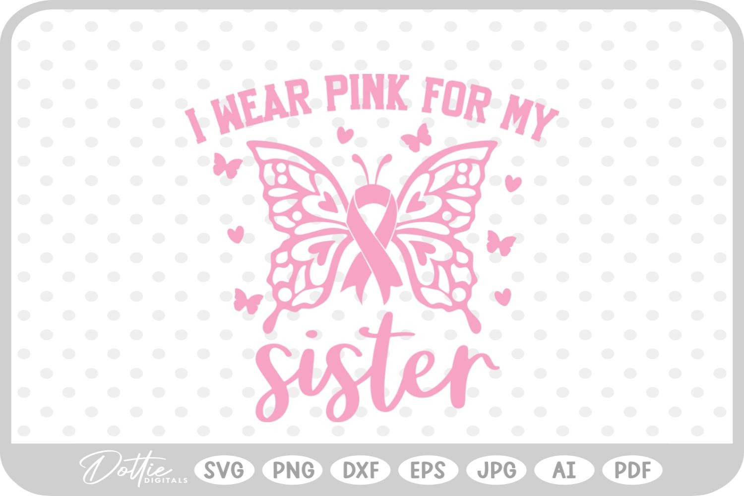 Butterfly Breast Cancer I Wear Pink For My Sister SVG PNG example image 1