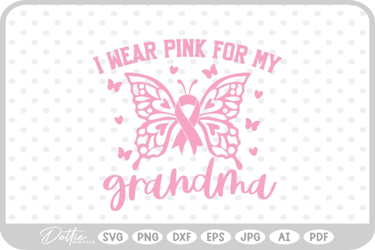 Butterfly Breast Cancer I Wear Pink For My Grandma SVG PNG example image 1