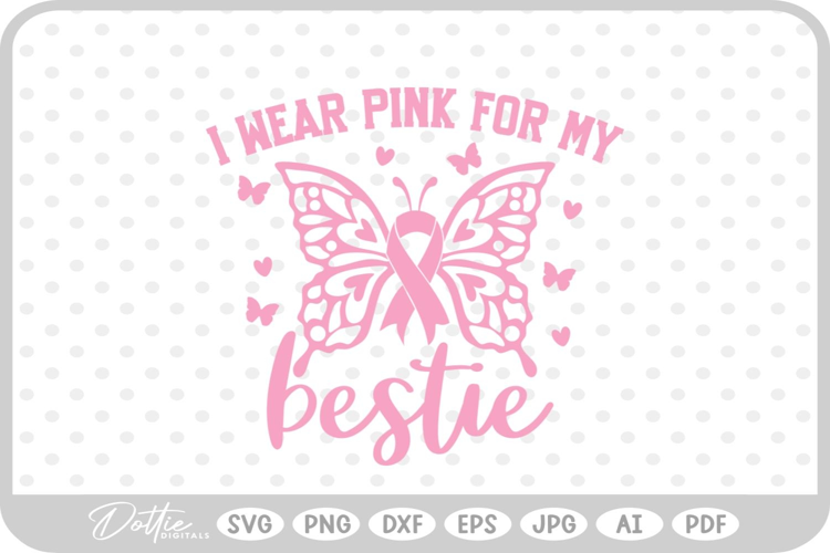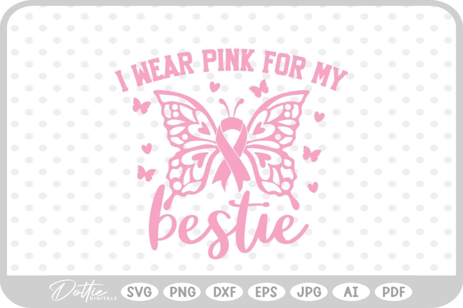 Butterfly Breast Cancer I Wear Pink For My Bestie SVG PNG example image 1