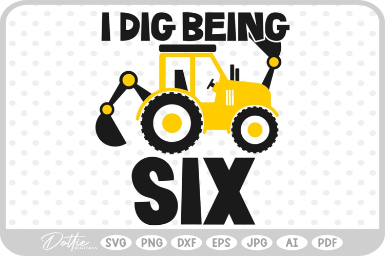 I Dig Being Age 6 Construction Vehicle SVG PNG DXF