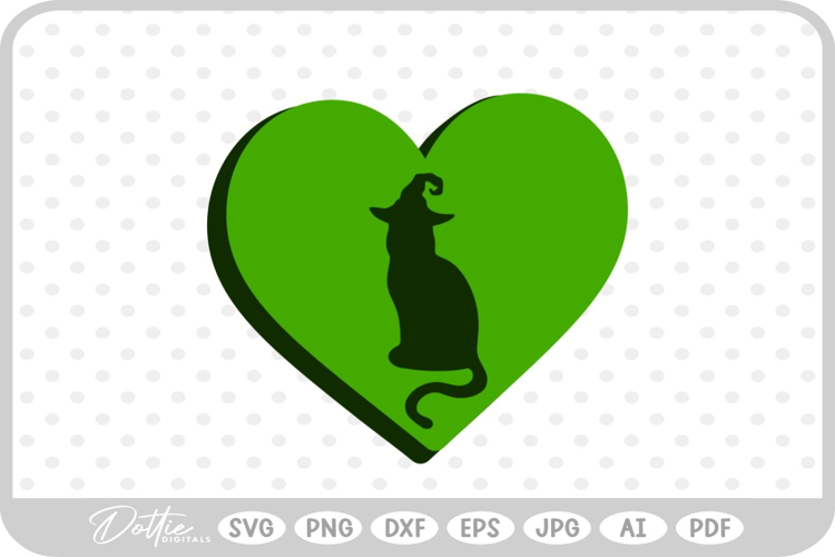 Spooky Season Witch Cat Halloween Heart SVG PNG DXF