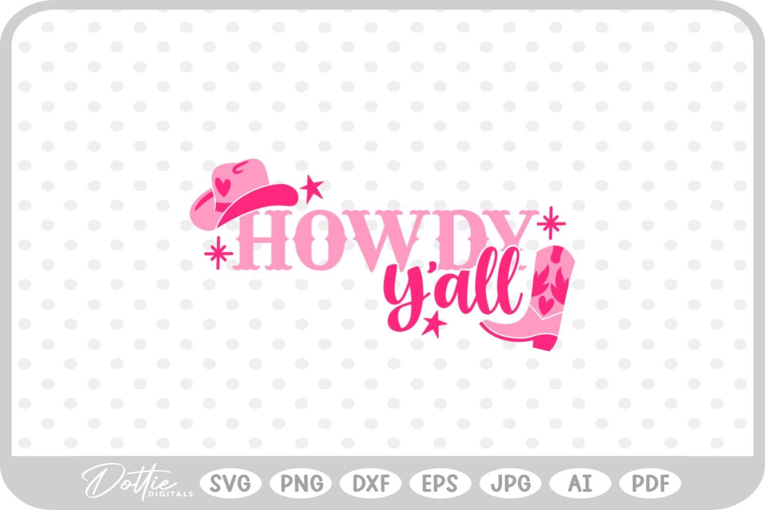 Howdy Y'all Pink Hat Boot Cowgirl Quote SVG PNG DXF example image 1