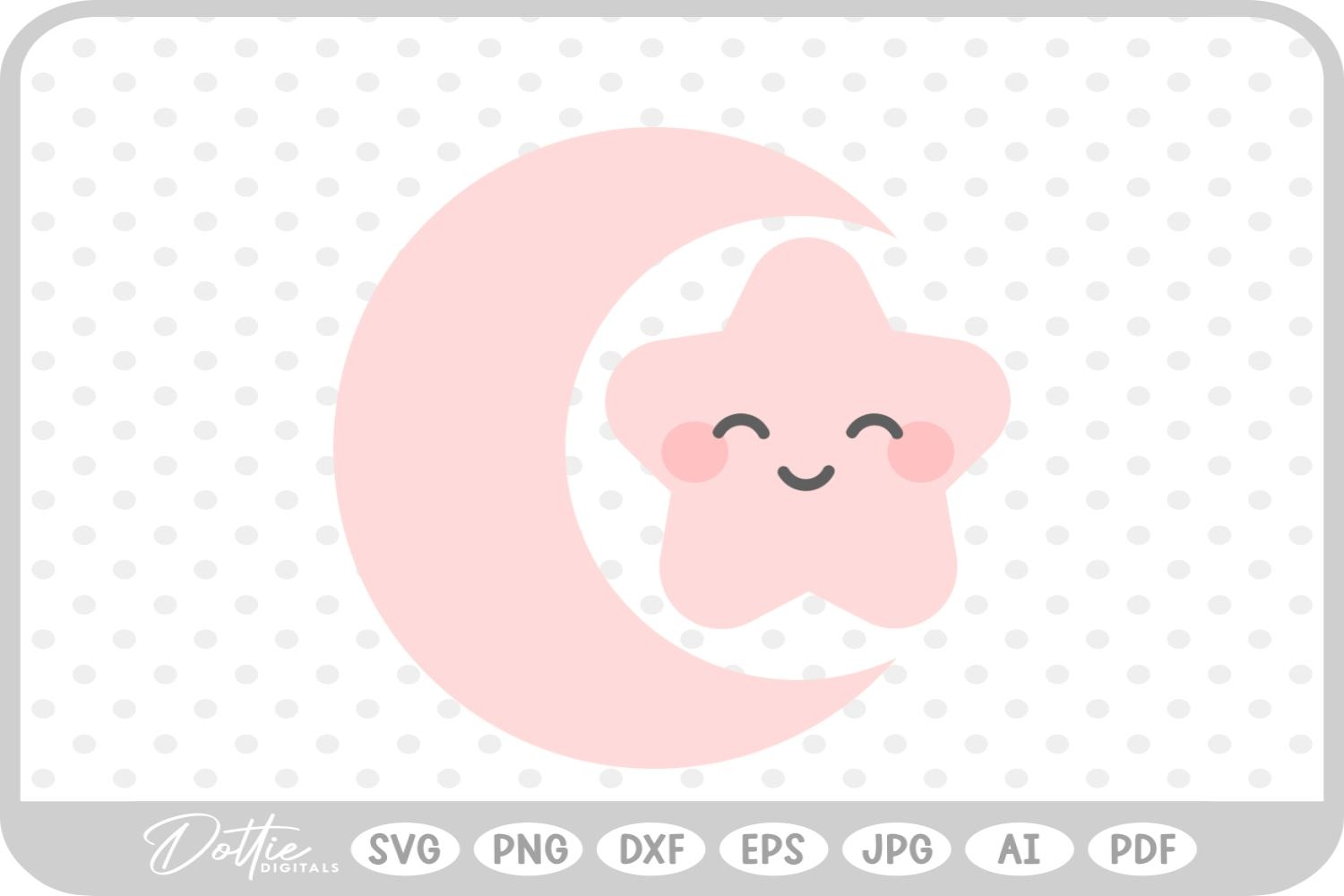 Cute Face Star Shooting Shape Sky Night Space SVG PNG DXF example image 1